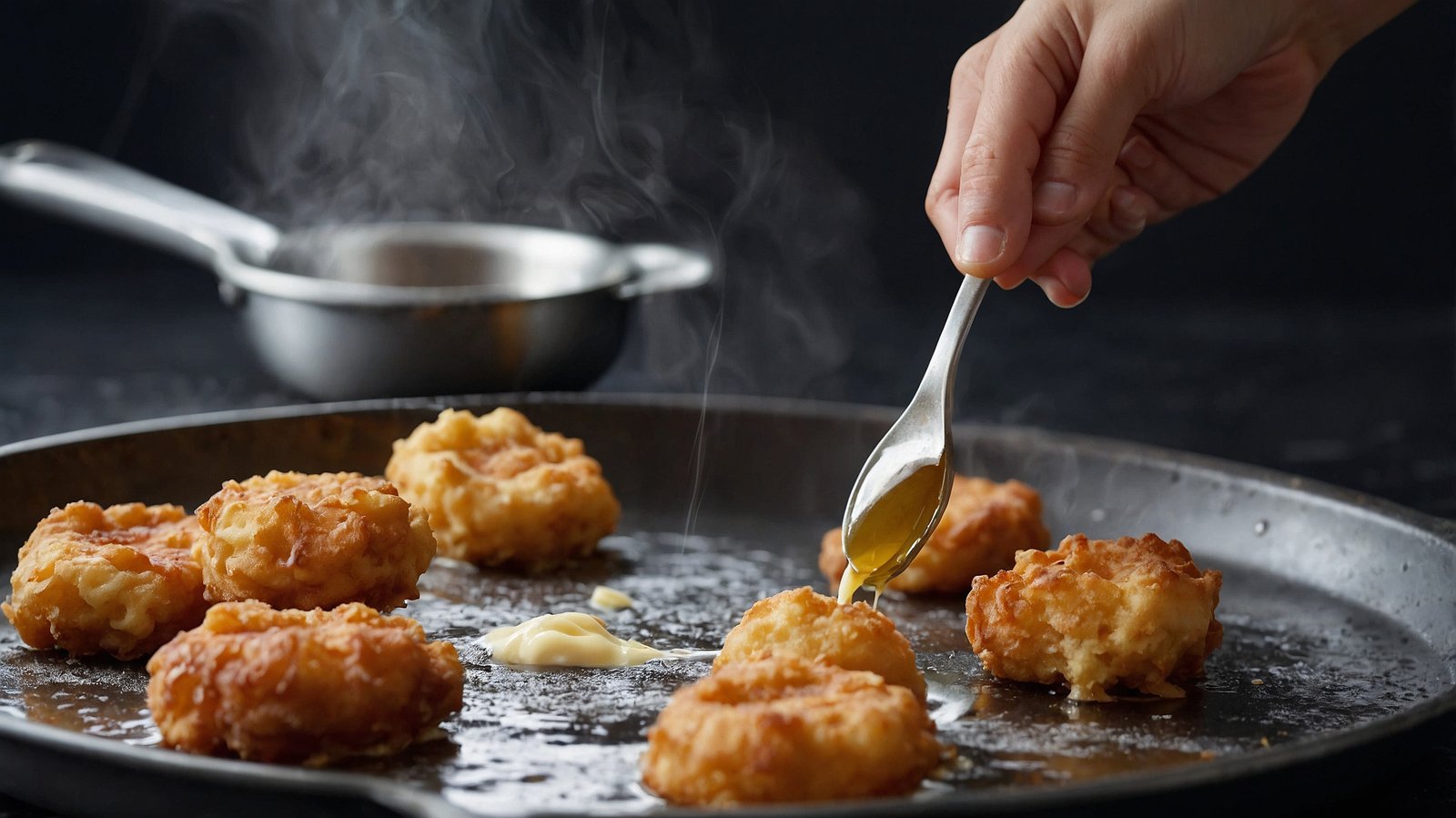 • Ensure your oil is hot enough before frying; a drop of batter should sizzle immediately upon contact.