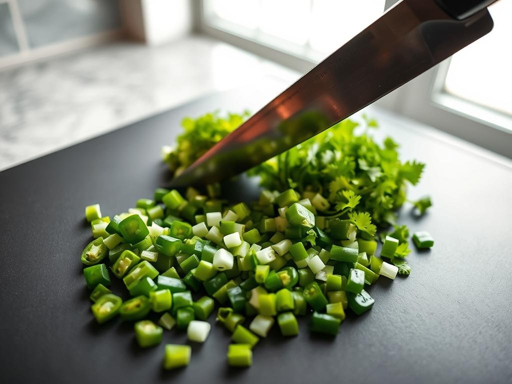 Finely chop the jalapeños (remove seeds for less heat), green onions, and cilantro. Use a sharp knife to get clean cuts.