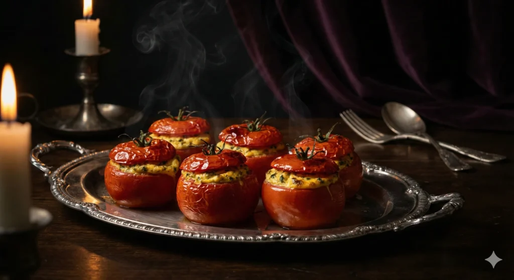 British cuisine in the Edwardian era loved the interplay of warmth and delicacy. Custards, puddings, and bakes often appeared at grand tables — dishes meant to nourish both body and spirit. Stuffed tomatoes were a quiet staple, especially in summers when gardens overflowed.