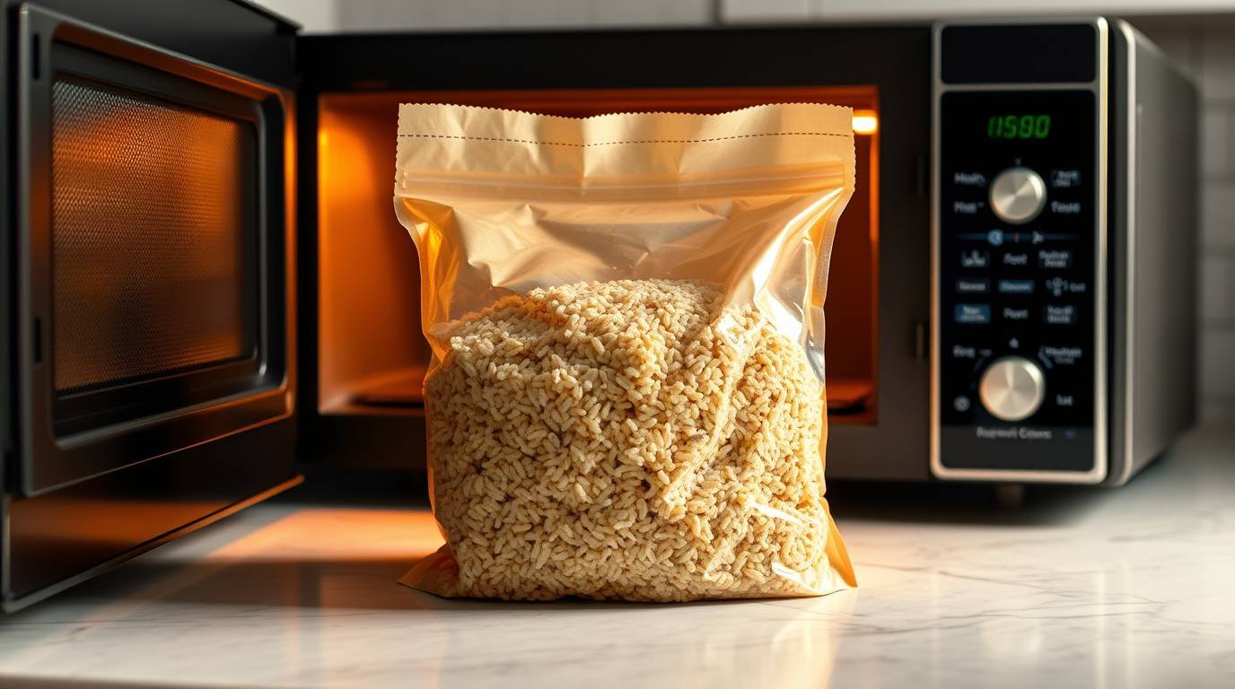 Place the microwavable brown rice or quinoa pouch in the microwave and heat according to the package instructions.Ensure the grains are thoroughly heated to provide a warm base for the comfort bowl.