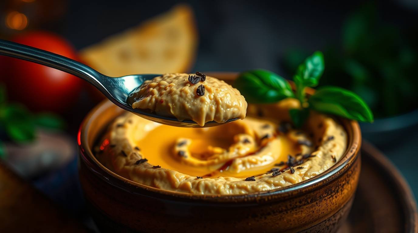 Drizzle the store-bought hummus over the top of the mixture, and add olive oil, dried basil or Italian seasoning, and a pinch of smoked paprika if desired.The hummus adds creaminess, while the olive oil and seasonings enhance the flavors. Smoked paprika can provide an extra layer of taste.