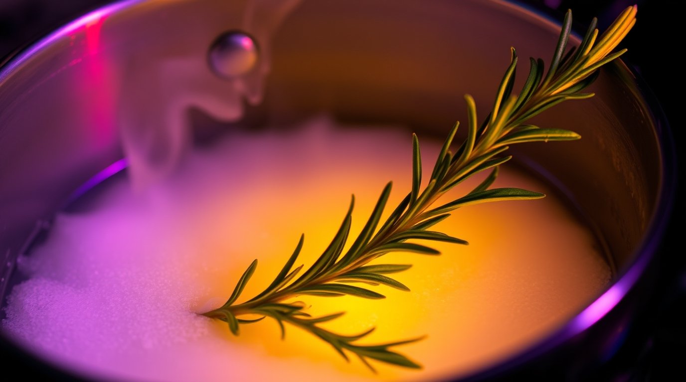 Combine ½ cup water, ½ cup organic cane sugar or honey, and 2 fresh rosemary sprigs in a small saucepan. Simmer gently over medium heat for 5–7 minutes until fragrant.Ensure the syrup doesn't boil too vigorously to preserve its delicate flavors. -