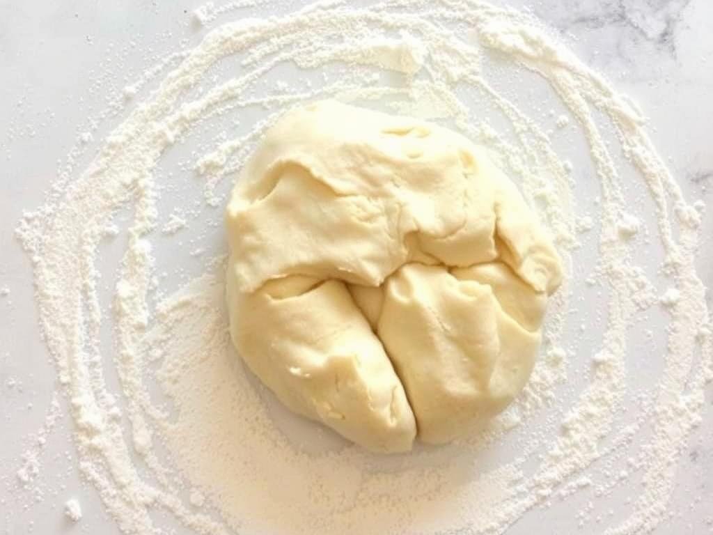 Transfer the dough onto a lightly floured surface and knead it gently for about 1-2 minutes until it’s smooth and cohesive. Divide the dough into smaller portions for easier handling.If the dough is too sticky, sprinkle it with a little more flour as you knead.