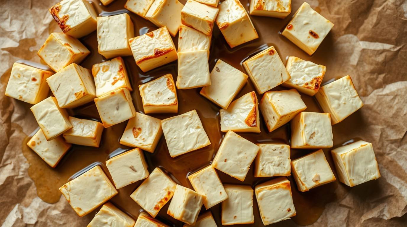 Press and cube 1 block of extra-firm tofu. Toss with olive oil, a touch of tamari, and black pepper. Bake at 400°F (205°C) for 20 minutes, flipping halfway, until golden and crisp.This step enhances the tofu's texture, providing a satisfying protein component to the dish.