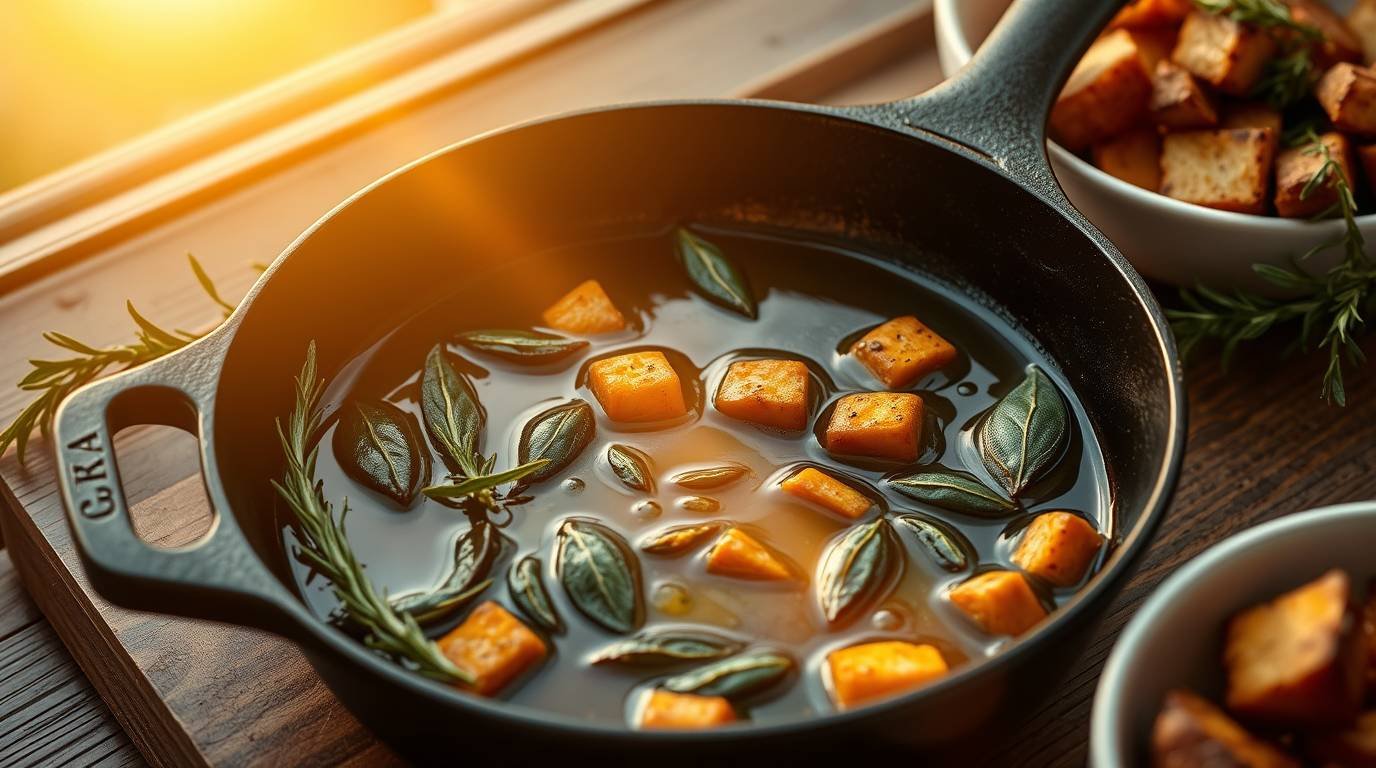 Warm a skillet and add 1 tablespoon olive oil. Gently sizzle rosemary and sage until fragrant, not browned. Add the roasted sweet potatoes and tofu; coat in the herb oil.This step releases the longevity-protective oils from the herbs, enhancing both flavor and health benefits.