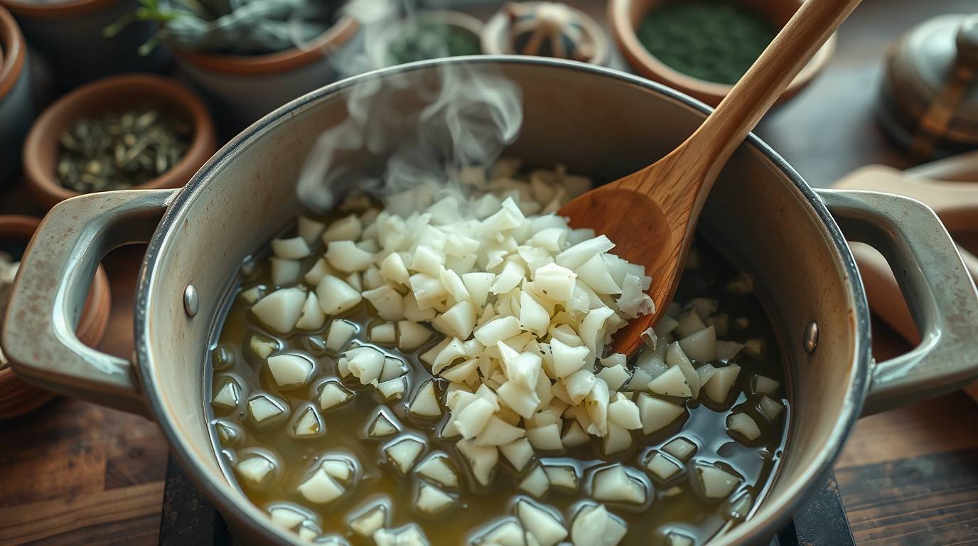 In a large pot, heat 2 tablespoons of olive oil over medium heat. Add the chopped onions and garlic, sautéing until they're translucent and fragrant, about 5 minutes.Don’t rush this step; the aroma is worth the wait! -