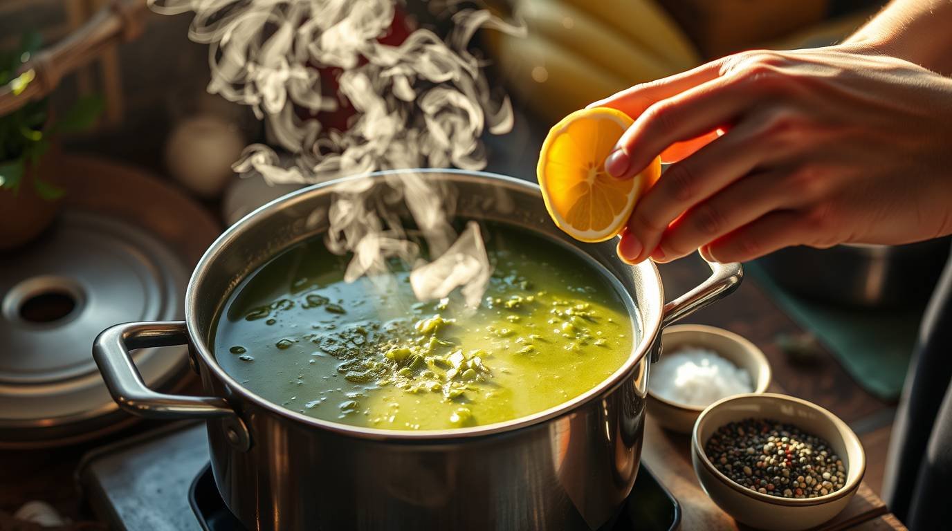 Pour the blended soup back into the pot and warm it gently over low heat. Season with salt, pepper, and a squeeze of lemon juice to brighten the flavors.Taste and adjust seasoning as needed; a little bit of acid goes a long way in balancing flavors! -