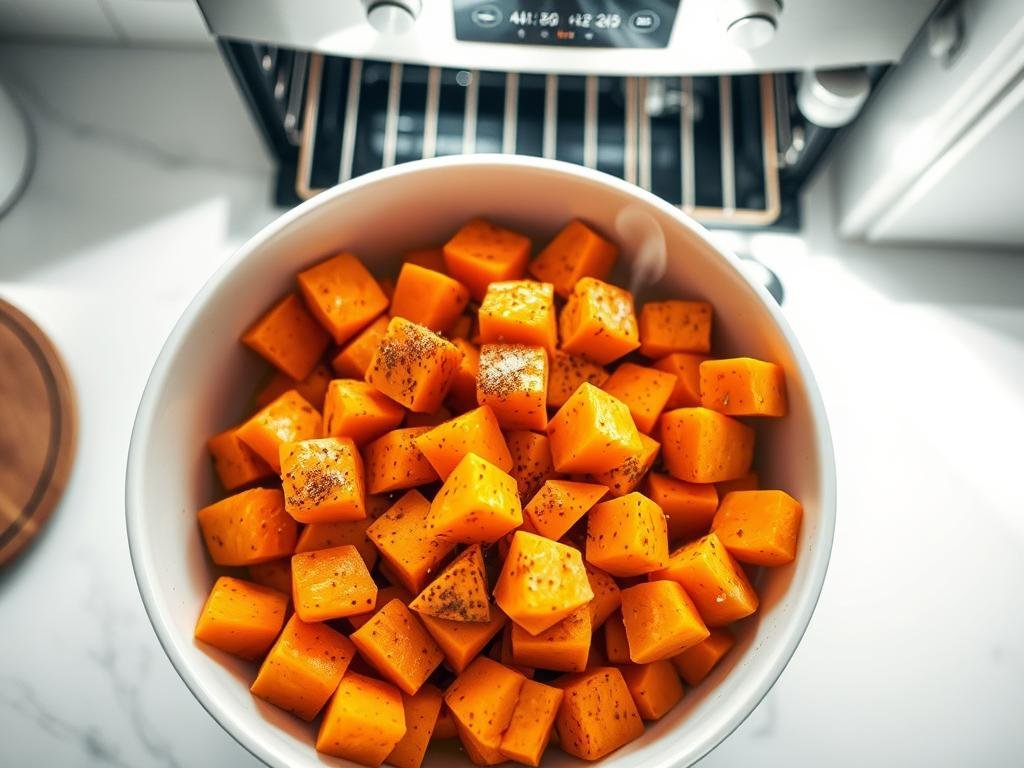 Preheat your oven to 425°F (220°C). Peel and dice 2 medium sweet potatoes into bite-sized cubes. Toss them in a bowl with 2 tablespoons of olive oil, 1 teaspoon of smoked paprika, salt, and pepper.Feel free to add your favorite spices—cinnamon or cayenne can add a lovely twist! -