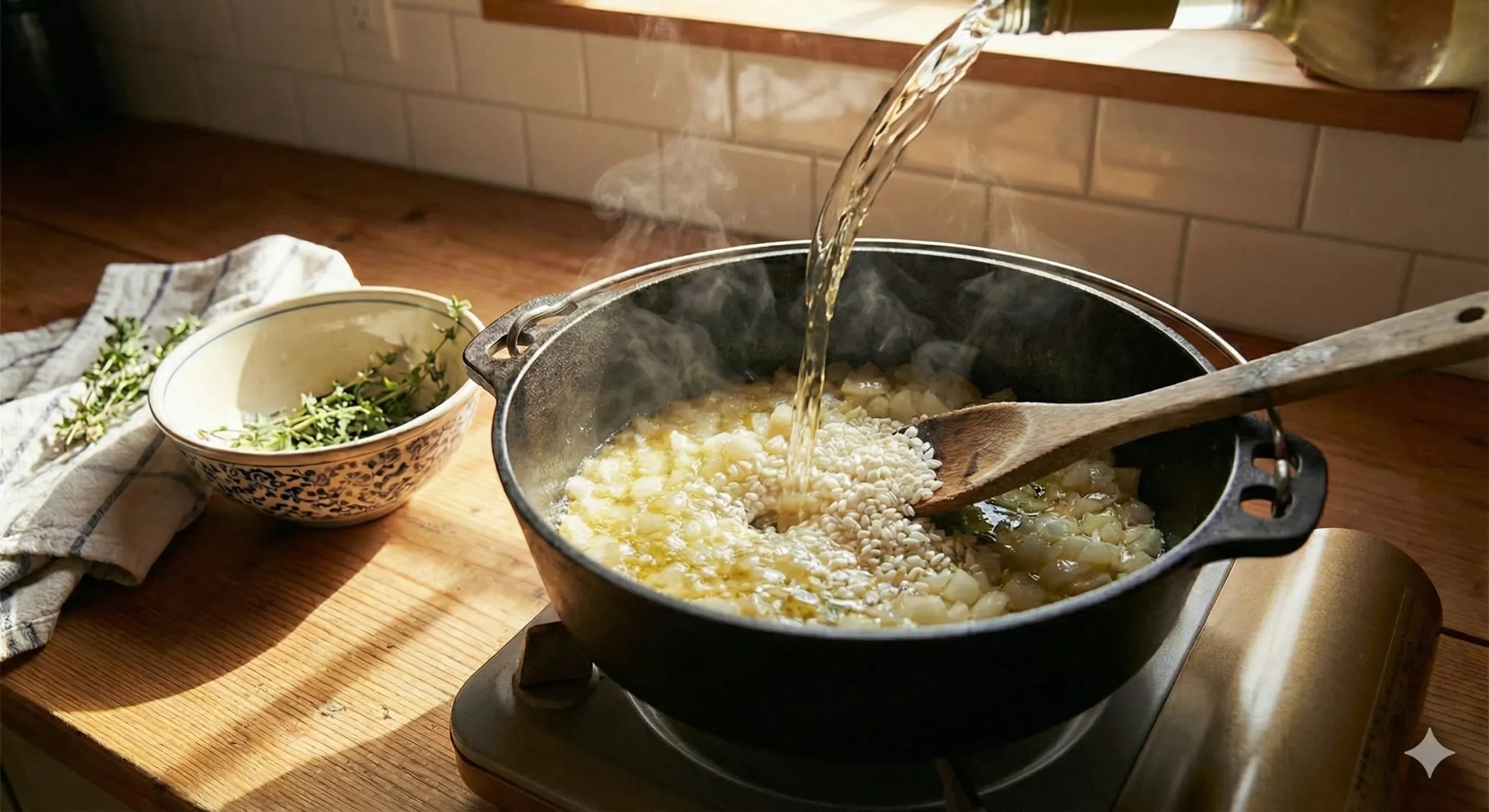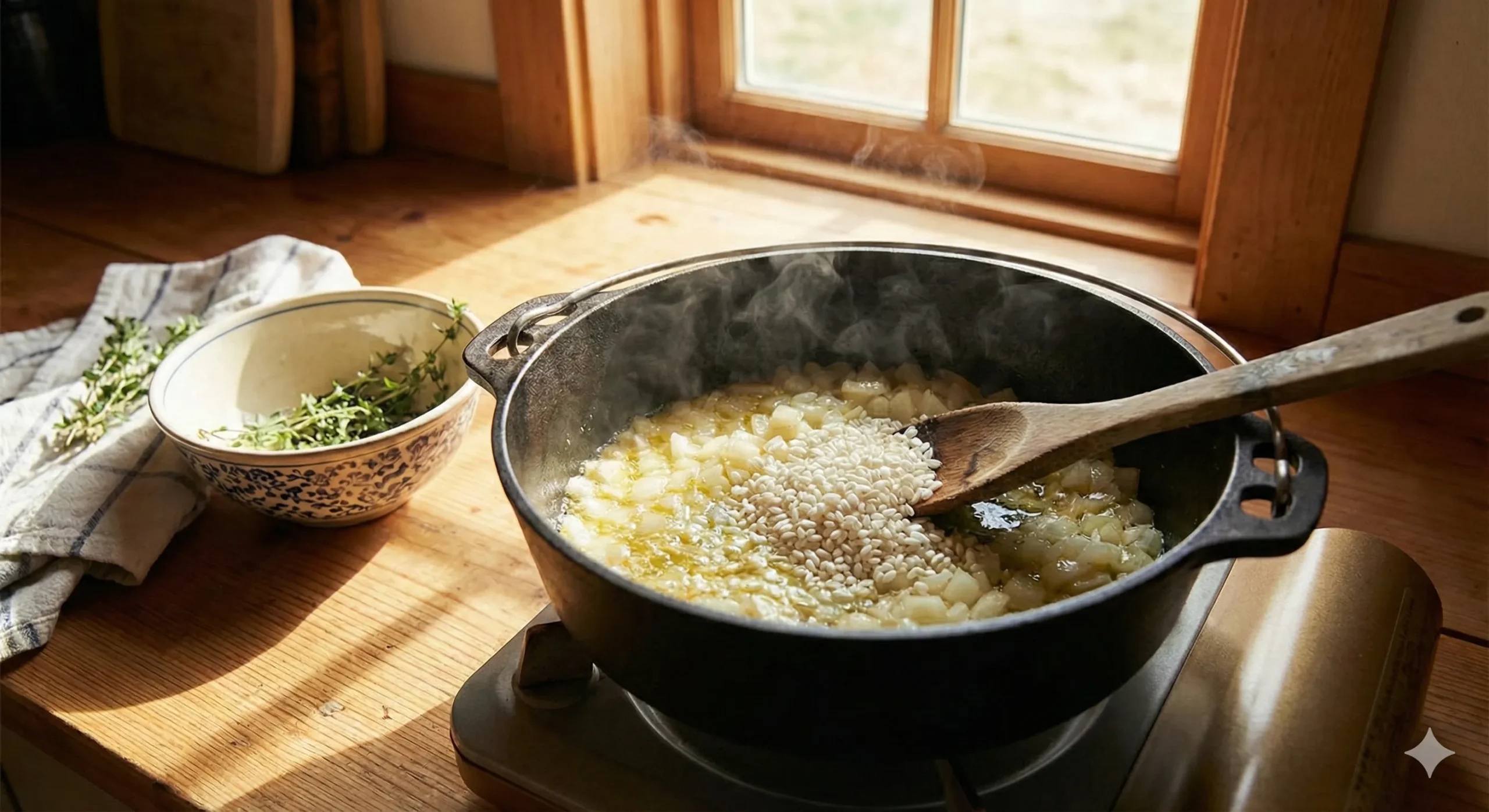 A dish that reminds you that revelation does not always come loudlyโsometimes it comes as the warmth of risotto spreading through your chest.