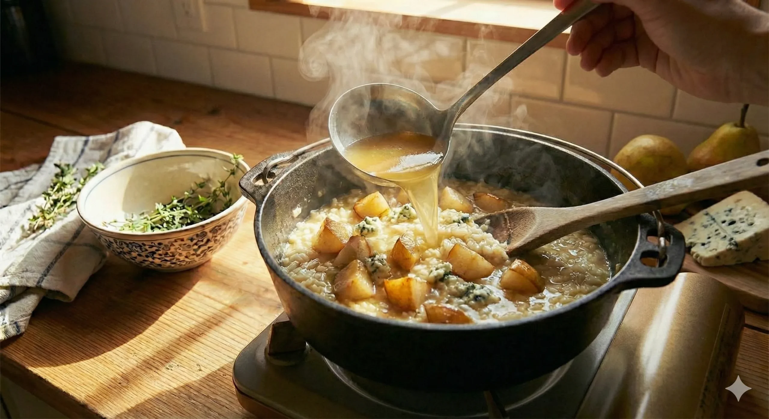 The Essence of Moonlit Pear & Blue Cheese Risotto