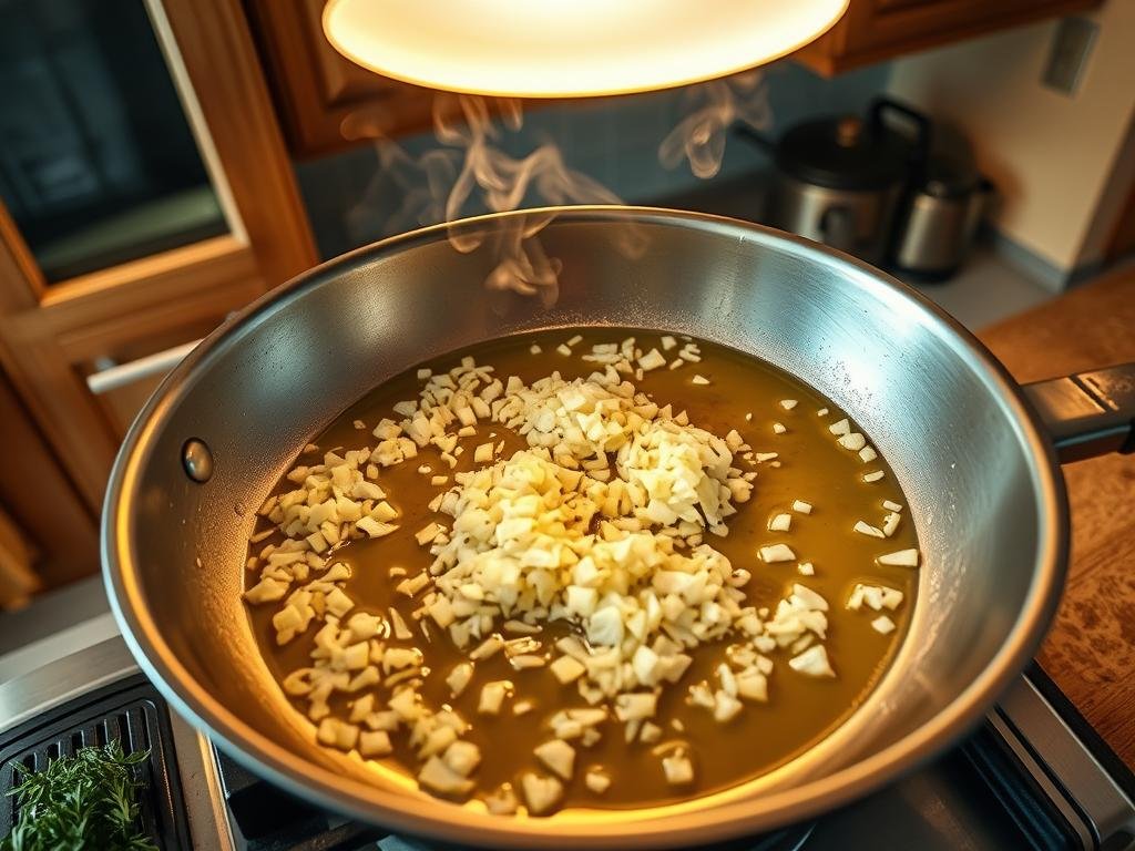 In a large skillet, heat 2 tablespoons of olive oil over medium heat. Add 1 finely chopped onion and 2 minced garlic cloves. Sauté for about 5 minutes until the onion becomes soft and translucent.Make sure not to let the garlic burn; it should be fragrant and lightly golden. -