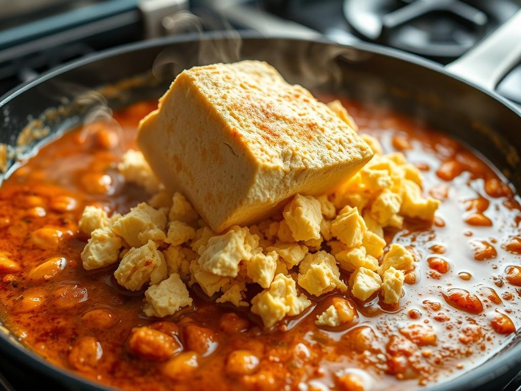 Crumble 1 block (14 oz) of firm tofu into the skillet, gently folding it into the sauce. This mimics the texture of eggs and absorbs the flavors beautifully.Make sure to drain the tofu well before crumbling; excess moisture can make the dish watery. -